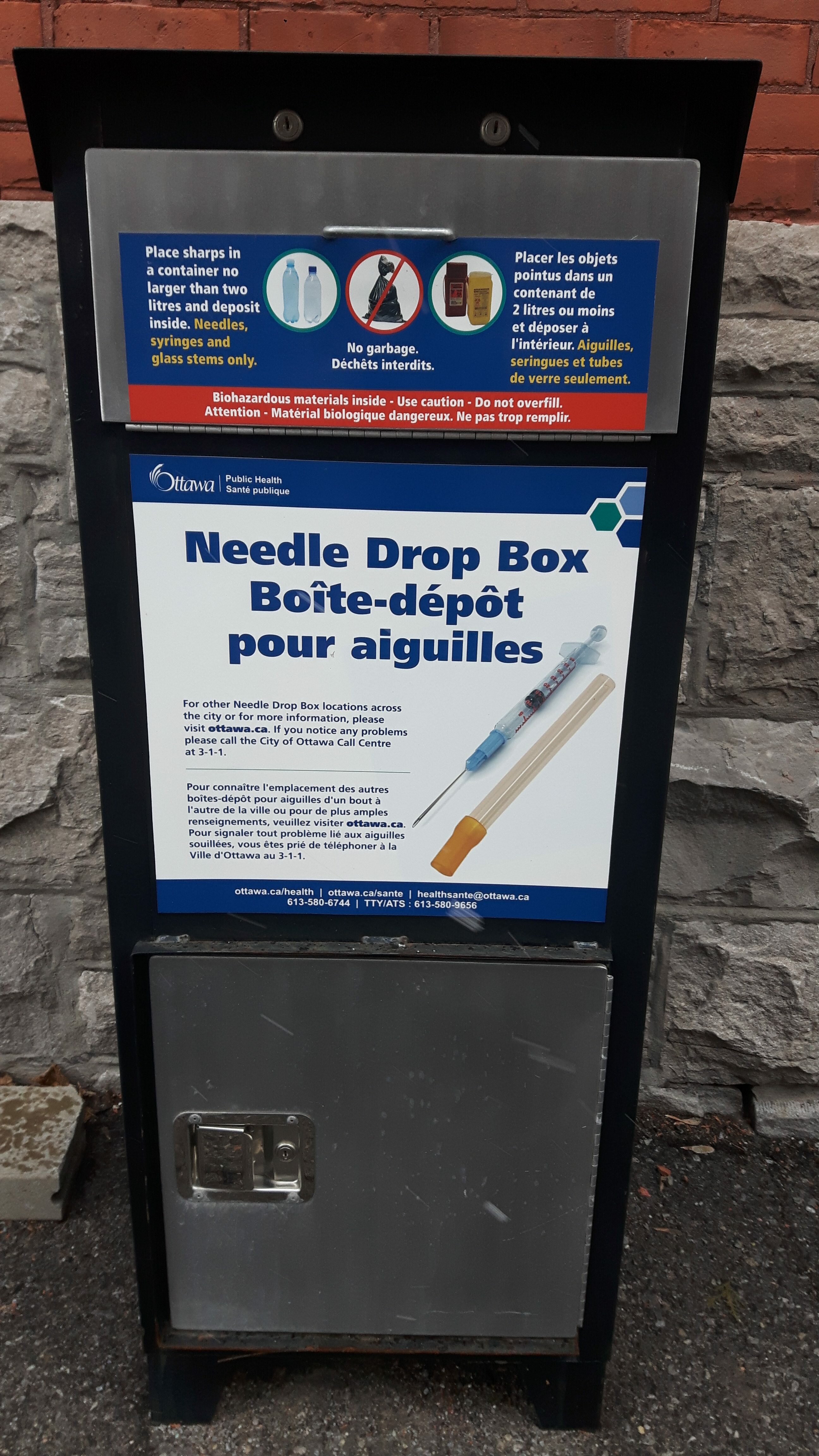 (Click on the icons in the map to see the location of the needle drop boxes in Ottawa. You can also click on the ‘+’ and ‘-‘ buttons under the map to zoom in and out)