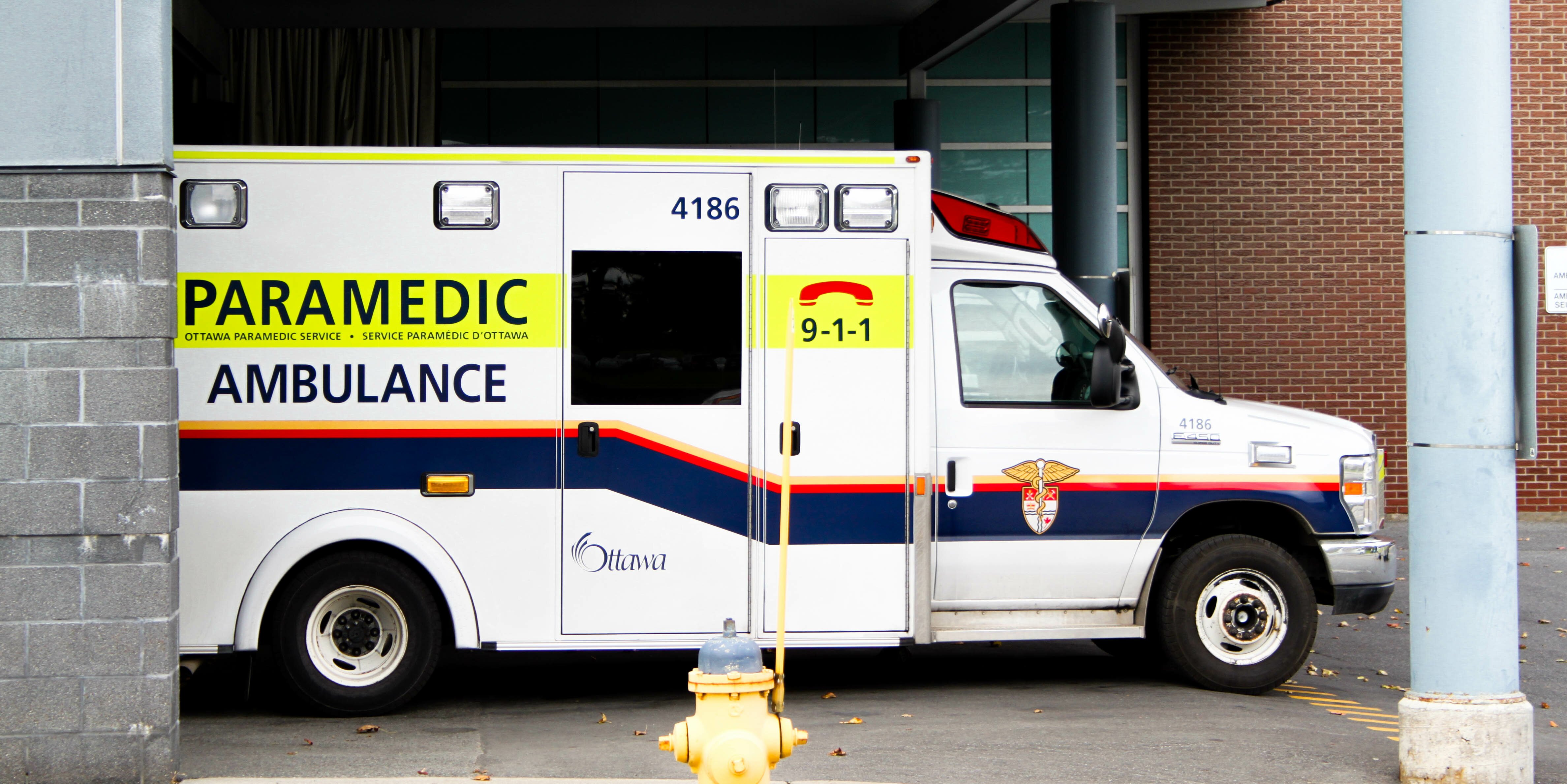 An ambulance at The Ottawa Hospital. The highest rate of self-harm related visits to emergency rooms in 2012 were women between the ages of 15 to 24 in Ottawa, according to the State of Ottawa’s Health report published in 2014. Photo by Olivia Bowden.